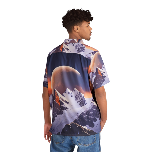 White moon and mountains Men's Hawaiian Shirt (AOP)
