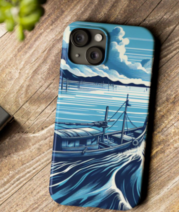 The blue Boat River Iphone 15 Phone Case, Slim Cover for Smartphone, Protective