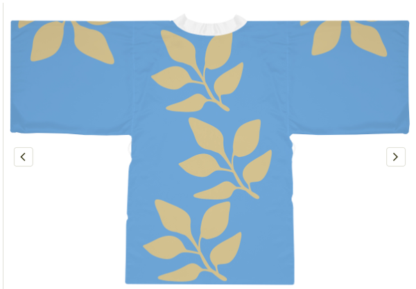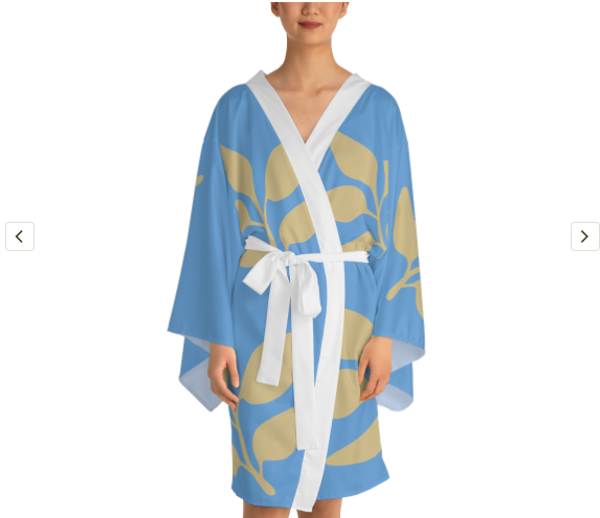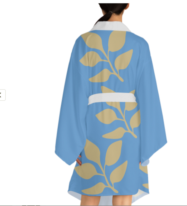 Versatile and stylish, this Long Sleeve Kimono Robe in beige leaf and blue style exudes a calming and elegant vibe.