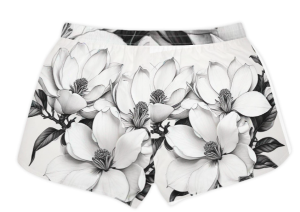 Spring blossom Black and White Women's Casual Shorts perfect for a relaxed and stylish look. These shorts are ideal for spring and summer, offering comfort and trendy design. Suitable for women looking for a casual yet chic outfit for everyday wear or outdoor activities.