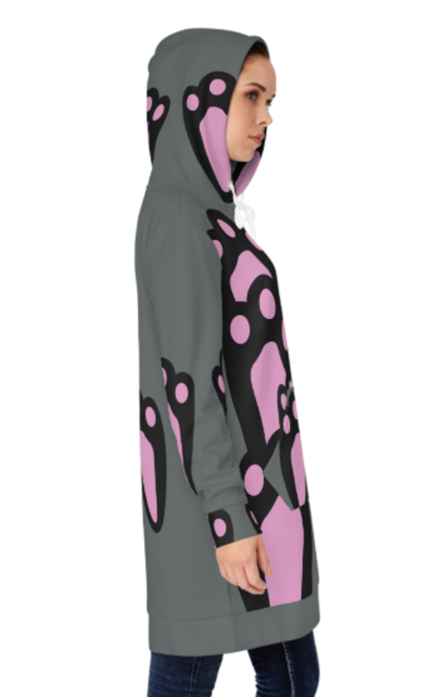 Cute Animal Paw Print Hoodie Dress, Relaxed Dress, Cozy Lounge Wear, Gift for Pet Lovers, Casual Outfit, Fall Fashion