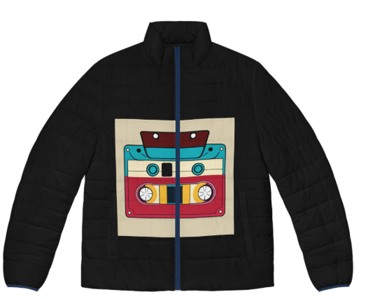 Retro Cassette Black Version Tape Puffer Jacket | Men's Puffer Jacket